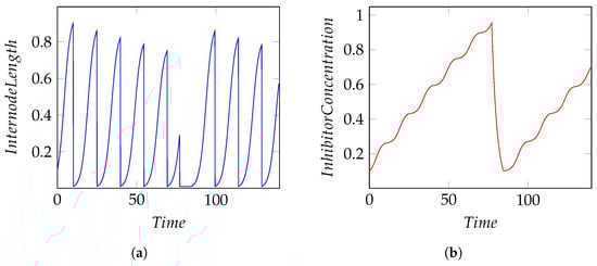 Internode length and inhibitor concentration simulations. (a) Internode length; (b) inhibitor concentration.