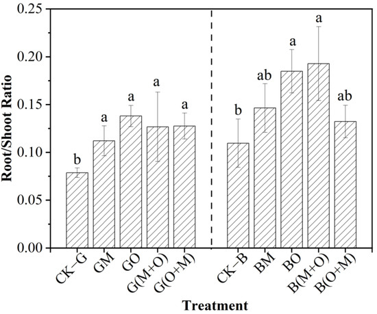 | B(M+O) | 0.44 ab | 3.69 a | 0.05 b | |