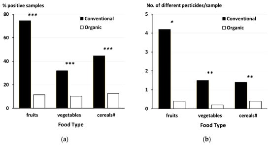 Differences in the level of pesticide use between organic and conventional farming systems are thought to have the largest potential direct and indirect effects on food quality and safety, and human health []. The current knowledge about the effects of organic versus conventional crop protection protocols on (i) pesticide residues, and (ii) other nutritionally relevant compounds in food crops are therefore also described separately, in Section 2.3.7 below.
