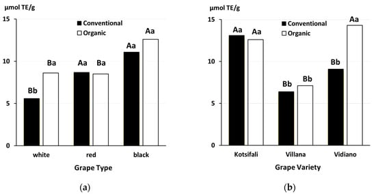 However, it is important to note that differences in fertilization regimes (e.g., the use of manure instead of mineral NPK fertilizer for organic vegetables) are also likely to have contributed to the higher antioxidant activity in organic crops observed in this study (see also Section 2.2 above).
