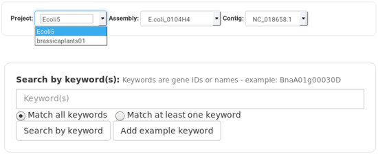 A publicly available instance of Daisychain is available at http://daisychain.appliedbioinformatics.com.au/ (accessed on 21 August 2021). This instance currently hosts comparisons for E. coli and B. napus assemblies. The B. napus instance currently compares four available genomes and one pangenome with a total of 367,159 genes. The E. coli instance compares four available genomes with a total of 20,399 compared genes. It is not possible for users to upload their own data but local instances of Daisychain with different datasets can be hosted using the code publicly available at https://github.com/AppliedBioinformatics/gene-daisychain (accessed on 21 August 2021) under GNU Lesser General Public License v3.