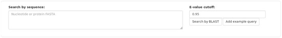 Daisychain-Web search bar. Searches are performed for one specific homology database. The search is performed for all or one assembly and for all or one contig found in the selection of assemblies. Genes can be searched for by keywords. At least one keyword needs to be entered. Search results either match all or at least one keyword. Keywords are matched against gene names and gene descriptions. Genes can also be searched for by sequence(s).