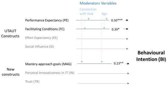 - Dwivedi, Y.K.; Rana, N.P.; Jeyaraj, A.; Clement, M.; Williams, M.D. Re-examining the Unified Theory of Acceptance and Use of Technology (UTAUT): Towards a Revised Theoretical Model. Inf. Syst. Front. 2019, 21, 719–734. [Google Scholar] [CrossRef]