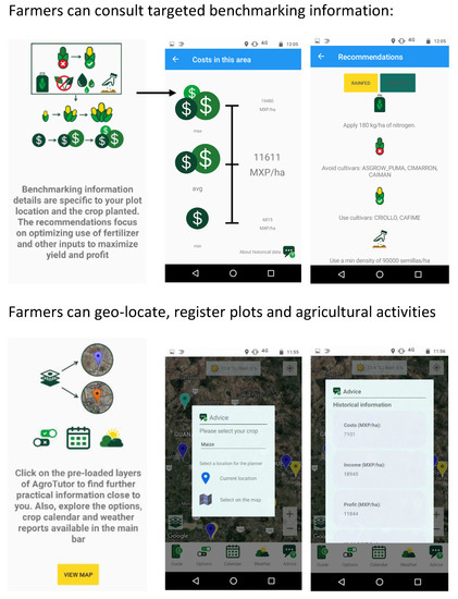 - Laso Bayas, J.C.; Gardeazabal, A.; Karner, M.; Folberth, C.; Vargas, L.; Skalský, R.; Balkovič, J.; Subash, A.; Saad, M.; Delerce, S.; et al. AgroTutor: A Mobile Phone Application Supporting Sustainable Agricultural Intensification. Sustainability 2020, 12, 9309. [Google Scholar] [CrossRef]
