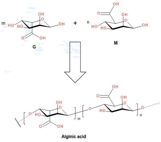 Bio-Algeen S90 is a natural extract from Ascophyllum nodosum algae. It is obtained using special extraction methods to preserve the physicochemical properties of the seaweed, supporting and accelerating natural processes instead of damaging or inhibiting them. The algae are collected by boats cutting them off from the sea bed in such a way as to ensure the growth of mother plants. On the same day, they are dried with geothermal heat and then ground. The described method guarantees that the cellular components of the sea algae will not be damaged by overheating or natural decomposition and will keep their quality. This makes an important condition for the quality of its products. The beneficial effects of seaweed and sea algae extracts have been known for a long time. However, the extensive application of natural extracts from brown algae (one of the oldest plants on earth) started 10 years ago. Bio-Algeen S90 is produced by the German company Schulze & Hermsen GmbH. Used in the experiment, it is a product with wide applications. Obtained from brown algae, it contains about 90 groups of chemical compounds, including amino acids, vitamins, alginic acid and other unexplored biologically active compounds. Alginic acid (Figure 1) is a block copolymer consisting of D-mannuronic and L-guluronic acids with β-(1,4)-glycosidic bonds. The most important elements present in the product are: nitrogen—0.02%; phosphorus—0.006%; potassium—0.096%; calcium—0.31%; magnesium—0.021%, boron—16 mg kg−1; iron—6.3 mg kg−1; copper—0.2 mg kg−1; manganese—0.6 mg kg−1; and zinc—1.0 mg kg−1. In addition, it contains molybdenum and selenium.