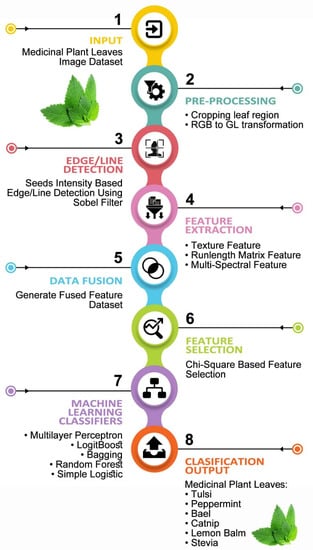 The main aim of this study is to propose a framework for the classification of medicinal plant leaves based on multispectral and texture features using a ML approach. This study contains six steps which are given below: