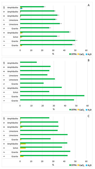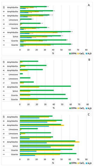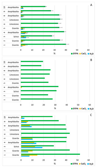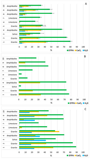 - Feng, M.-H.; Shan, X.-Q.; Zhang, S.; Wen, B. A comparison of the rhizosphere-based method with DTPA, EDTA, CaCl2, and NaNO3 extraction methods for prediction of bioavailability of metals in soil to barley. Environ. Pollut. 2005, 137, 231–240. [Google Scholar] [CrossRef] [PubMed]