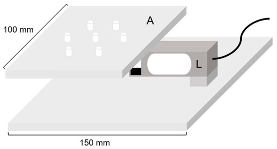 Diagram of the load cell. Pots were mounted on the acrylic plates attached to the load cells, and the leaching water was drained through the holes in the plate. A, acrylic plate; L, load cell.