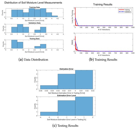 An illustrative training, validation, and testing result with is suggested in Figure 8 to show the performance of the proposed soil moisture retrieval model.