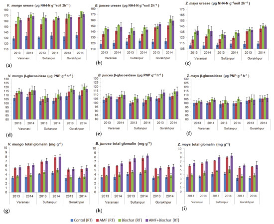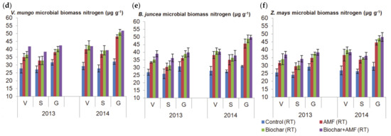 | 4. | AMF + biochar (RT) | Arbuscular mycorrhizal fungus amended with biochar under reduced tillage (AMF + biochar + RT) |