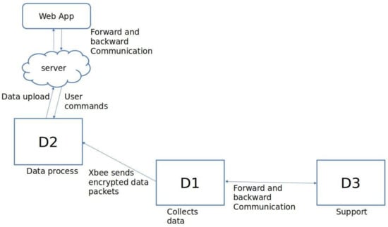 The cablebot (D1) will collect data and send it to the coordinator/flow valve (D2) system. D2 will process the collected data and instruct accordingly the solenoid valve attached to the zonal irrigation system of a given greenhouse installation or plot. Data will also be automatically uploaded to our server as backup. The agbot (D3) will act as a support device that inspects up-close any stress areas identified by D1 and will conduct soil sensing at random points in the plot/greenhouse (Figure 4). Various other capabilities are to be addressed at a second stage (possibly another research project) (Table 3).