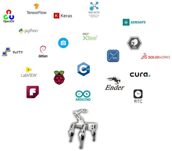 The idea is to develop a cost-effective system of autonomous moving platforms equipped with a necessary array of sensors for outdoor and indoor agricultural use. These moving platforms, be it aerial cable bots or ground AGVs, will capture data much like a drone would do inside greenhouses and provide microclimate data and soil sensitive information. With greenhouses and small to medium-sized plots in mind, cable bots present an ideal cost/benefit ratio compared to UAVs. To complement the aerial device, a four-legged agricultural bot (agbot) is also under development that will collect measurements and perform tasks that need to be conducted from the ground, such as soil measurements, weeding, etc. We opted to use a quadruped agbot instead of a wheeled robot, because of the greater better degrees of freedom of movement, the avoidance of obstacles from the skeletal elements of the greenhouse, the arched and not smooth ground irrigation system components, and finally high planting density (Table 1).