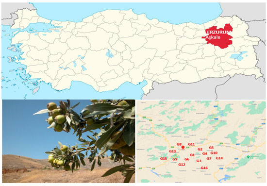 Fruits of 16 wild grown oleaster-leafed pear trees naturally grown in rural areas of Askale districts belong to Erzurum province in eastern Turkey were sampled in 2018 year (Figure 1).