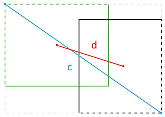 where represents the Euclidean distance between the center points of the prediction box and the ground truth, c represents the diagonal distance of the smallest closed area that can simultaneously contain the prediction box and the ground truth. Figure 9 shows the structure of CIoU.