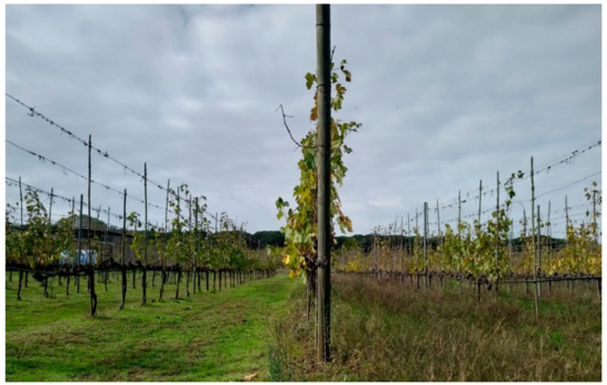 - Guerra, B.; Steenwerth, K. Influence of Floor Management Technique on Grapevine Growth, Disease Pressure, and Juice and Wine Composition: A Review. Am. J. Enol. Vitic. 2012, 63, 149–164. [Google Scholar] [CrossRef]