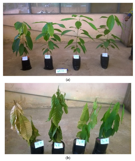 Effect of K on cocoa seedlings under (a) well-watered conditions and (b) water stress condition.