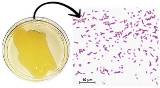 Xanthomonas campestris pv. campestris grown in potato dextrose agar (PDA) medium and an observation of the plate by a light microscope (Nikon eclipse E2000, Nikon® Instruments Inc., Melville, NY, USA) with 100× magnification, after Gram staining.
