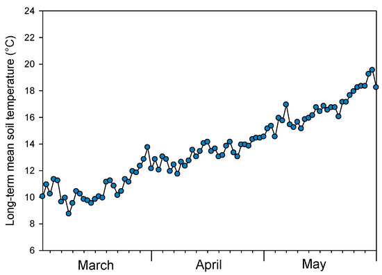 Mean soil temperatures recorded over the 10-year period of 2004–2015 in the 2010 field experimental site.