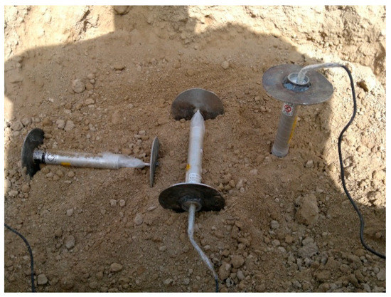 Placement of strain transducers including endplates inside the soil profile in longitudinal, lateral and vertical directions.