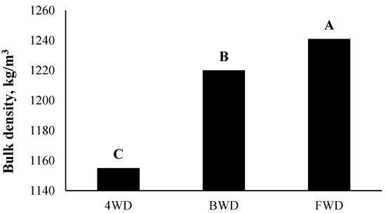 Changes in bulk density due to changes in the drive system (different letters shows significant difference between treatments).