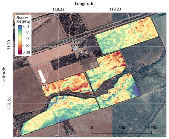 3.4. Theme 3—Relationships between Variation in Soil Apparent Electrical Conductivity, Grain Yield and Soil Chemistry