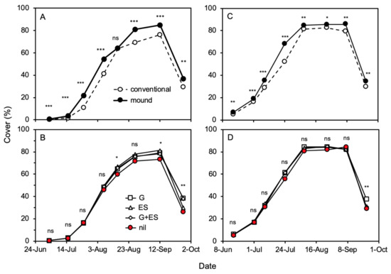 | Main effect tillage | *** | *** | *** | ns | *** | |