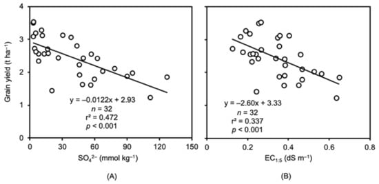 3.3.3. Correlations between Soil Chemistry and Grain Yield