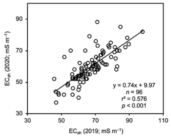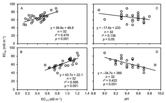 - Slavich, P.G.; Petterson, G.H. Estimating the electrical conductivity of saturated paste extracts from 1:5 soil: Water suspensions and texture. Aust. J. Soil Res. 1993, 31, 73–81. [Google Scholar] [CrossRef]