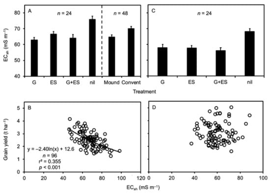 3.4.1. EM38 Readings, Treatments and Grain Yield