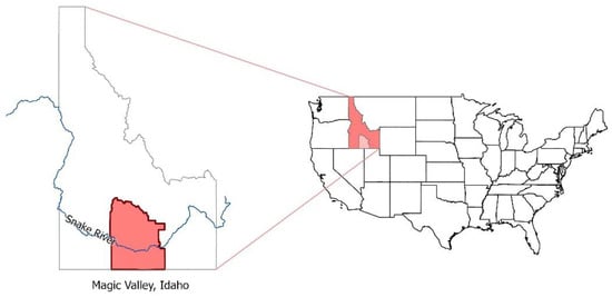 - USDA-NASS. 2017 Census of Agriculture. Available online: https://www.nass.usda.gov/Publications/AgCensus/2017/Full_Report/Census_by_State/Idaho/index.php (accessed on 24 February 2021).
