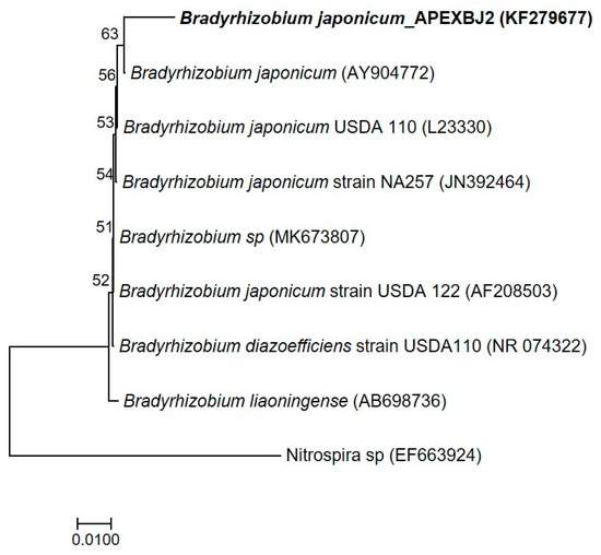 3.1. Identification of the B. japonicum (APEXBJ2) Strain