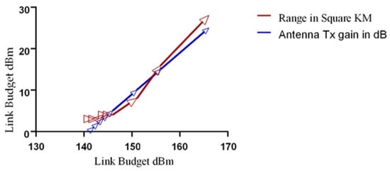 The link budget cab be determined from transmitted power and node sensitivity, and is expressed as: