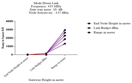 A cloud-based agriculture field-monitoring scheme was implemented to precisely monitor the temperature, humidity, and other required parameters to operate end devices in an agriculture field. This scheme facilitates the conservation of water and energy in a field. Here, an open agriculture field was studied. Figure 6 shows the architecture of the LoRa network. The proposed protocol can be adapted to a greenhouse, hydroponic agriculture, and vertical farming. Devices provide numerous data on agriculture parameters from the field, and analysis of the data allows the farmer to work more effectively. A LoRa-enabled sensor network was deployed in the agriculture field. A LoRa-enabled architecture for precise irrigation and monitoring has been demonstrated in which LoRa enabled each sensor node and could establish a communication link with another LoRa-enabled receiver. LoRa is a low-power operating technique that enables transmission and reception with a wide range of communication. Although many other protocols exist, they have significant limitations compared to LoRa.