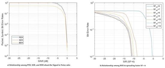 The analysis of LoRa communication in distinct applications can be undertaken based on the parameters of spreading factor (SF), link budget, signal-noise ratio (SNR), bandwidth (BW), link budget, receiver sensitivity, bit error rate (BER), and packet error rate (PER).