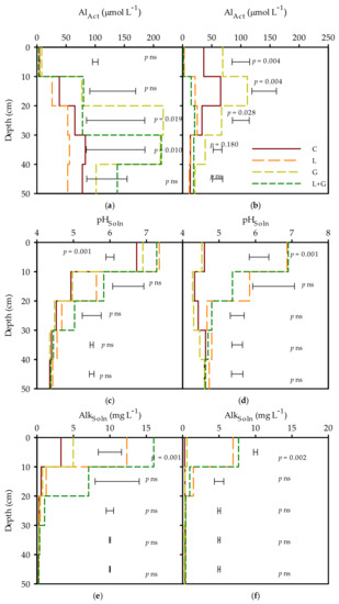 - Alleoni, L.R.F.; Cambri, M.A.; Caires, E.F.; Garbuio, F.J. Acidity and aluminum speciation as affected by surface liming in tropical no-till soils. Sci. Soc. Am. J. 2010, 74, 1010–1017. [Google Scholar] [CrossRef]