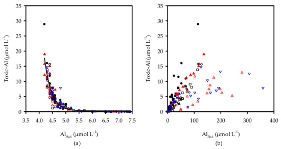 - Kinraide, T.B. Identity of the rhizotoxic aluminium species. Plant Soil 1991, 134, 167–178. [Google Scholar] [CrossRef]