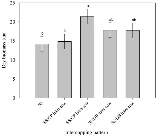 3.3. Dry and Fresh Biomass Yield Accumulation as Affected by Intercropping Pattern