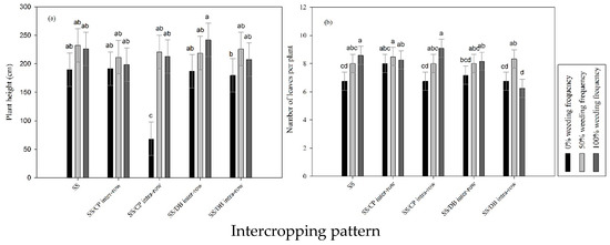 3.4. Impact of Intercropping Pattern and Weeding Frequency on SS Height and Number of Leaves per Plant