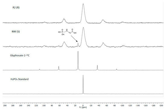 - Jacob, G.S.; Schaefer, J.; Stejskal, E.O.; McKay, R.A. Solid-state NMR determination of glyphosate metabolism in a Pseudomonas sp. J. Biol. Chem. 1985, 260, 5899–5905. [Google Scholar] [CrossRef]