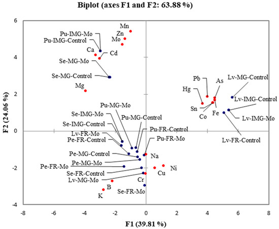 Fertilizer use is one of the main factors influencing the mineral contents of the plants [13,14,15]. Foliar application of fertilizers is 10–20% more influential than soil application [16,17,18]. Molybdenum is an essential nutrient for plant growth and is required in trace quantity. It is an integral component of nitrate reductase and nitrogenase, and vital for the nitrates’ assimilation in the soil. Apart from its role in nitrate reductase, its function in higher plants is not well known [19]. Therefore, the role of Mo is closely associated with nitrogen metabolism, and its deficiency leads to N deficiency in plants [20]. Foliar fertilization of Mo can effectually increase internal Mo and improve the performance of molybdo-enzymes [21].