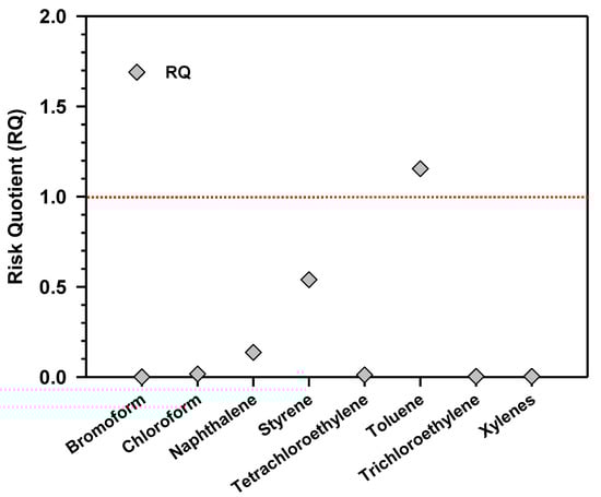 - Ramírez, N.; Cuadras, A.; Rovira, E.; Borrull, F.; Marcé, R.M. Chronic risk assessment of exposure to volatile organic compounds in the atmosphere near the largest Mediterranean industrial site. Environ. Int. 2012, 39, 200–209. [Google Scholar] [CrossRef]