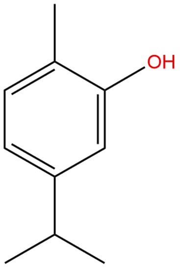 Over recent years, the effect of natural products in treating fungal diseases has been the subject of increasing interest, which is fuelled by a growing concern for better environmental protection [,,,]. Among them, there are plant crude extracts, essential oils, and their compounds that have proven efficacy in treating diseases caused by fungi without side effects on the environment [,]. Carvacrol is a natural agent derived from plants (Thymus vulgaris and Origanum vulgare described by Linnaeus). This monoterpene is considered nontoxic to humans and is commonly used as a flavouring substance. Carvacrol has been the subject of many investigations that place a higher priority on natural products with pharmacological activities to control such diseases. Previous investigations demonstrated that carvacrol is one of the potent monoterpenes that can be used to control fungal species [,,].