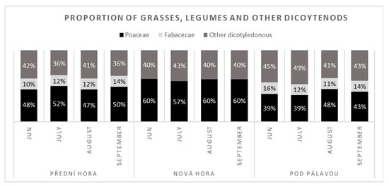 3.2. Proportion of Grass, Leguminous and Other Dicotyledonous Species in Inter-Row Vegetation