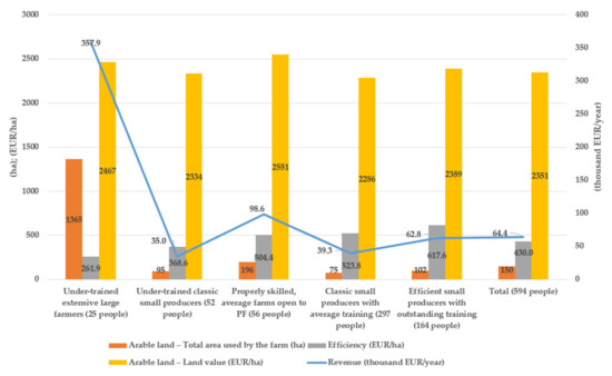 PF requires a skilled workforce, while the rural unemployed are generally low-skilled, i.e., employing this technology is not a viable option. In Hungary, the level of education of agricultural workers is significantly lower than that of other sectors of the economy and the EU average [19], and the shortage of skilled labour in agribusiness could be a major problem in the next 5 to 10 years. The success of PF depends not only on the farmer’s preparedness but also on the availability of up-to-date information [24,25].