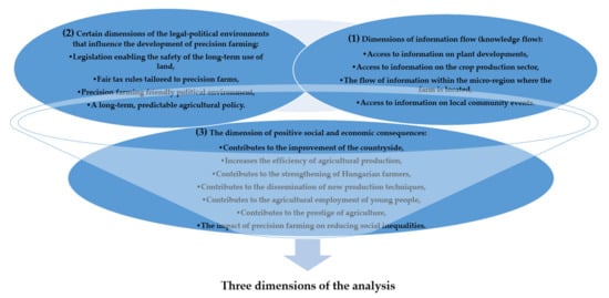 This study deals with the social conditions of precision farming (PF) and the coherent agricultural policy environment through the example of Hungarian agriculture. The contribution of this work to international literature is the analysis of the under-researched component of innovation (our interpretations about this and other related terms are described in Appendix A), i.e., social conditions, in an agricultural economy that has undergone two fundamental structural changes over the past thirty years. In the early nineties, formerly nationalized lands were re-privatized (e.g., through the issuance of compensation vouchers) [1], and disintegrating cooperatives and state farms were replaced by family farms and business organizations [2].