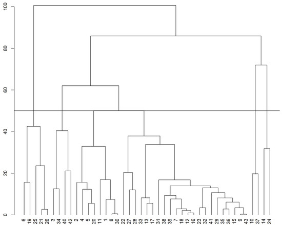 - Mojena, R. Hierarchical grouping methods and stopping rules: An evaluation. Comput. J. 1977, 20, 359–363. [Google Scholar] [CrossRef]