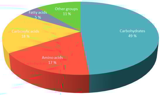 | Carboxylic acids | 2-ketoglutaric acid | −7.3 * | −9.6 * | −5.8 * | −4.8 * |