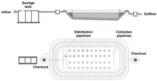 Constructed wetlands may be used for treating municipal sewage, industrial sewage, leakage from landfills, and stormwater and surface runoff from land used for agricultural purposes, highways, or airports [,,,,,,]. In wetlands wastewater treatment plants, hydraulic and habitat conditions are a model of natural wetland ecosystems. Wastewater treatment is carried out as a result of the intensification of mechanical, chemical, and biological processes taking place in the natural soil, plant, and water environment. Under such conditions, it is possible to remove organic contaminants, nitrogen, and phosphorus.