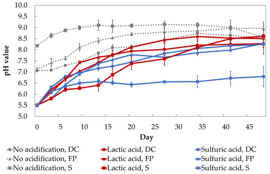 - Sommer, S.G.; Husted, S. A simple model of pH in slurry. J. Agric. Sci. 1995, 124, 447–453. [Google Scholar] [CrossRef]