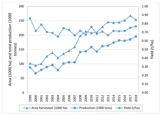 - FAOSTAT—Food and Agriculture Organization of the United Nations. Statistical Databases; FAOSTAT: Rome, Italy, 2020. [Google Scholar]